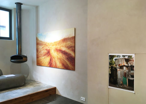 "In einem gelben Wald, da lief die Straße auseinander, / und ich, betrübt, daß ich, ein Wandrer bleibend, nicht / die beiden Wege gehen konnte, stand", beginnt vielleicht das bekannteste Gedicht von Robert Frost in der Übersetzung von Paul Celan. Diese Zeilen erinnern an das namensgebende Dilemma, das die drei Künstler in dieser Ausstellung diskutieren, denn obwohl ihre individuellen Herausforderungen sehr unterschiedlich sind, betrachten sie alle ihre künstlerische Praxis als eine Reise, wie es der chinesische Titel 左右 (wörtlich "links rechts", obwohl er auch als "Wegkreuzung" oder "Scheideweg" übersetzt werden könnte) andeutet. An dieser Wegkreuzung warnt Dali Sun vor dem falschen Glanz der Perfektion und plädiert dafür, dass sich die Wahrheit in einem natürlicheren, „selbstlosen Prozess (…) des Loslassens und der Suche nach Stärke“ offenbart. Heng Li, scheinbar verloren und unfähig zu entscheiden, wohin er sich wenden soll, ist gezwungen, zu seinem Ursprung zurückzukehren; er verleiht "dem Gras eine andere Textur, eine neue Haltung". Xiaohan Xus Objektiv führt uns direkt in "die Ruhe nach dem Sturm, und sie ist sowohl in China als auch in Deutschland erdrückend und schwer."